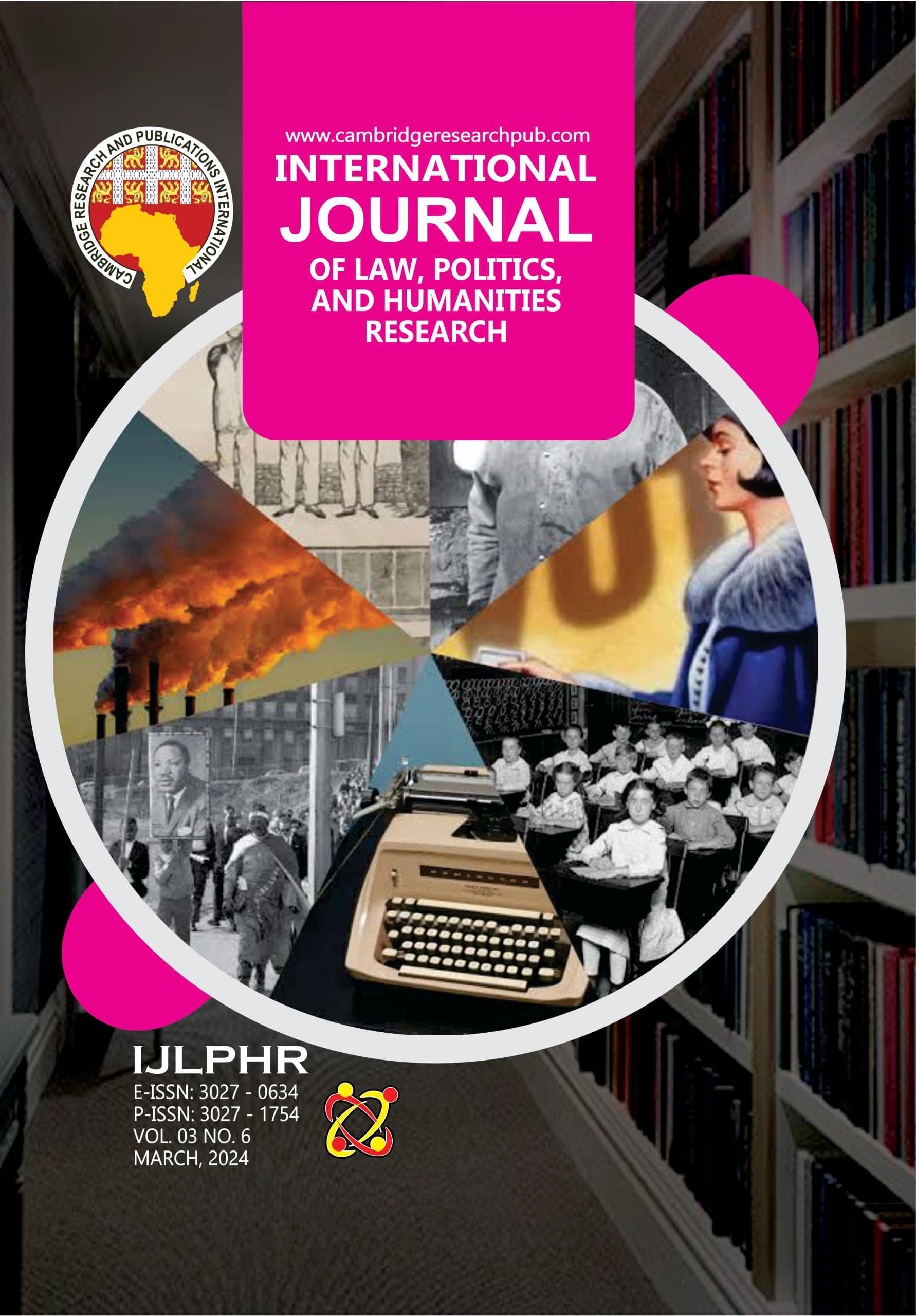 C.I. OJO, O.B. IJAYA, & A.S. ADEKOYA. (2024). INFLUENCE OF SOCIALIZATION ON CHOICE OF CLOTHING AMONG YOUNG ADULTS IN TERTIARY INSTITUTIONS IN NIGERIA: A CASE STUDY OF FEDERAL COOPERATIVE COLLEGE, IBADAN, NIGERIA. International Journal of Law, Politics and Humanities Research, 3(6). https://cambridgeresearchpub.com/ijlphr/article/view/201
